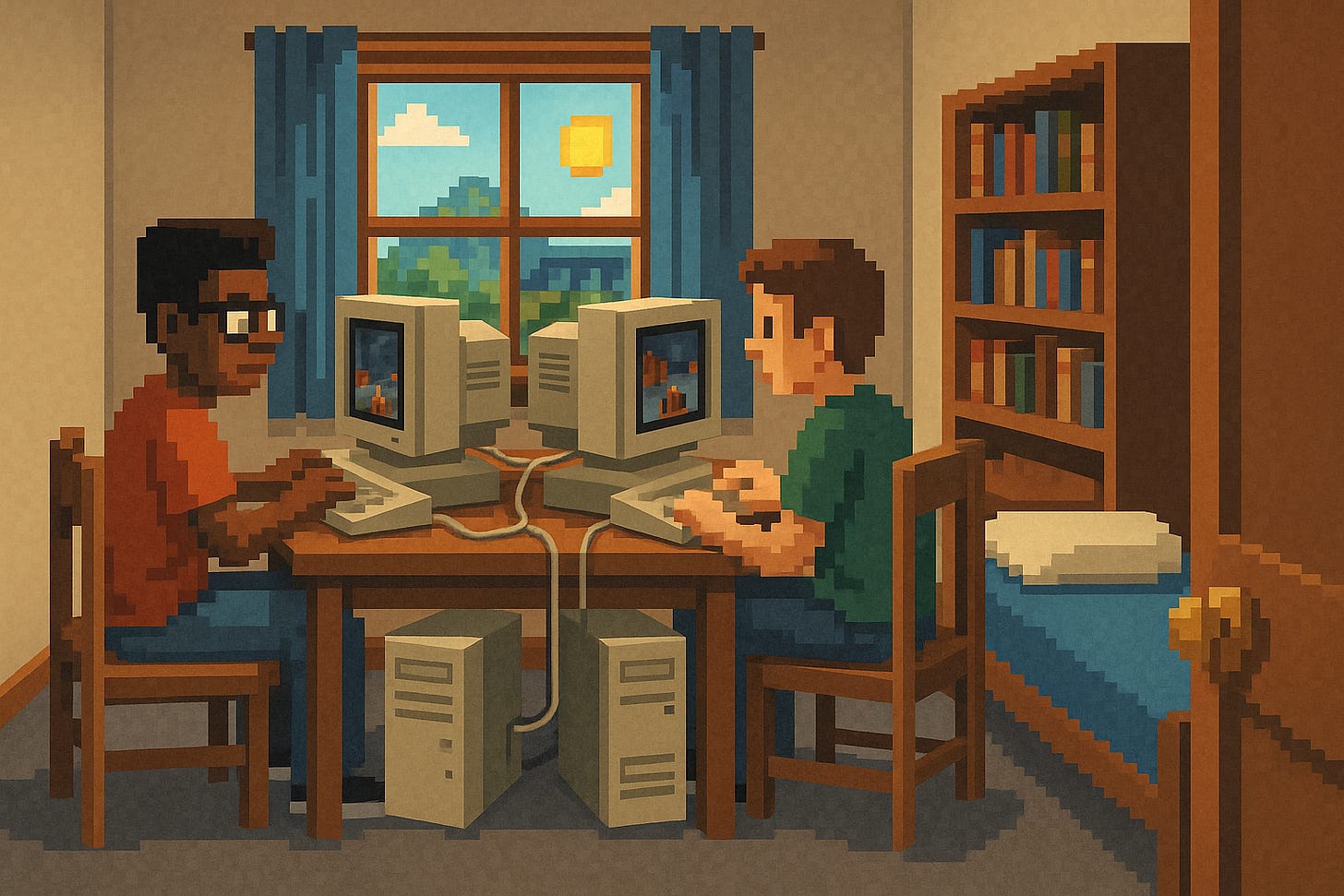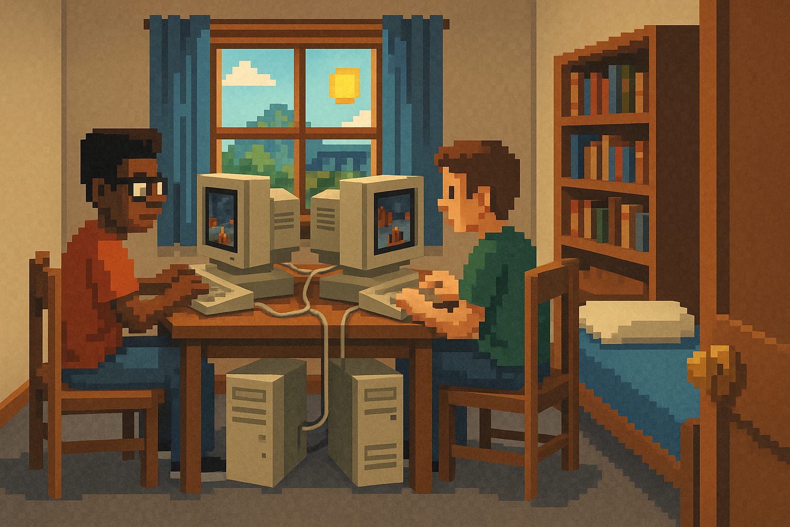 The first time I saw a network game must have been around 1996. A couple of friends set up two computers in the same room, back to back, linked by a serial cable. They were playing Duke Nukem 3D in multiplayer mode. This seemed crazy. The only multiplayer I had known at the time was playing Street Fighter in versus mode on the same keyboard, or Lotus III on split screen. But linking two PCs and sharing the same virtual world? That was next level. Remember, this was before Ethernet. Configuring a serial connection required specific IT knowledge that most regular users didn’t possess. Not to mention, the simple concept of computer networking, was foreign to most.